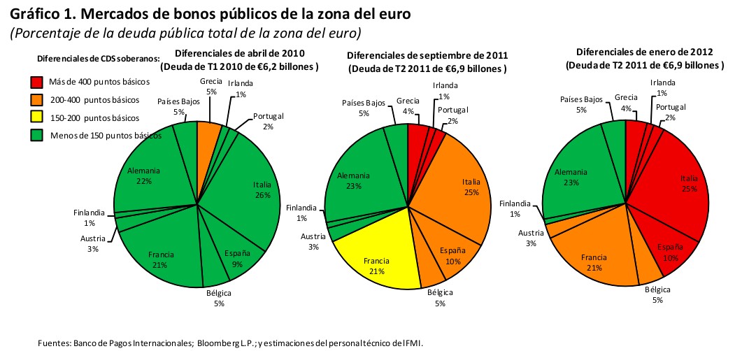 El informe enfatiza que sus proyecciones base "apuntan a una desaceleración de la actividad mundial, pero no a su colapso […] Sin embargo, este pronóstico parte del supuesto de que en la zona del euro las autoridades redoblan sus esfuerzos para hacer frente a la crisis". En concreto, parte de la hipótesis de que "las primas de los bonos soberanos se estabilizan alrededor de los niveles actuales y empiezan a normalizarse a comienzos de 2013". Además, supone que las políticas "logran contener el desapalancamiento de los bancos de la zona del euro", haciendo que el crédito y la inversión en la Unión Monetaria se contraiga "sólo moderadamente".