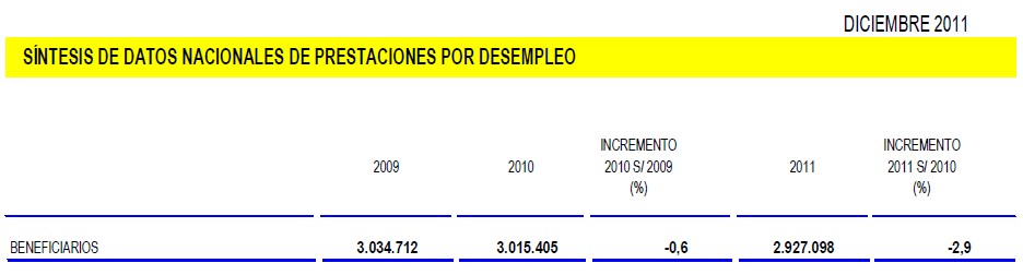 Atendiendo únicamente a las estadísticas que ofrece el Ministerio de Empleo y Seguridad Social, el año 2011 cerró rozando los 5 millones de parados (cifra correspondiente al cálculo del desempleo una vez eliminado el efecto del maquillaje estadístico). Una cifra que más tarde corregiría la Encuesta de Población Activa (EPA). La encuesta que prepara el instituto Nacional de Estadística (INE) arrojaba 5,2 millones de parados a cierre de año.