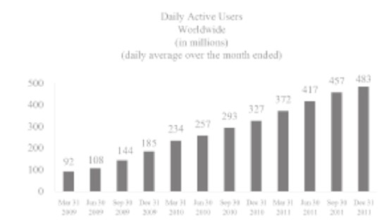Por último, otro dato. Pero de los importantes, de los que definen la viabilidad de un negocio. Si ustedes acuden al formulario presentado por Facebook en la Securities and Exchange Commission (SEC), verán que la empresa asienta todo su potencial en el siguiente gráfico -la mala calidad del gráfico obedece, incomprensiblemente, a la fuente original-: