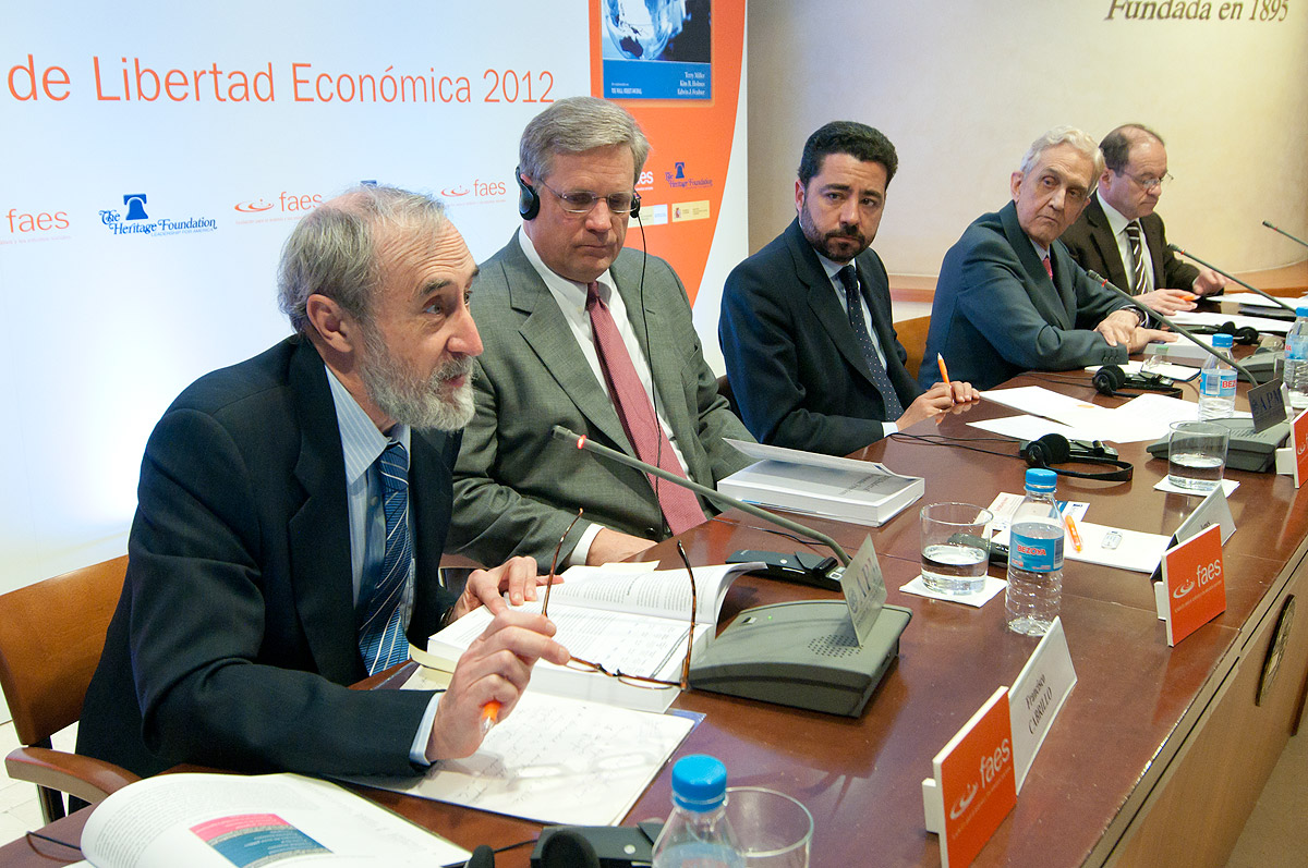 El Índice de Libertad Económica (ILE) de la Fundación Heritage y el WSJ, presentado en España por la Fundación FAES, vuelve a destacar la relación entre libertad y prosperidad. Los países más libres, económicamente hablando, también son los que menos han sufrido los embates de la Gran Recesión que golpea al mundo occidental desde el año 2007. Ésta es una de las principales conclusiones que pueden extraerse de la lectura de la edición de este año del ILE, que ha sido presentado este martes en Madrid por el presidente de Libertad Digital y economista Francisco Cabrillo, junto a Pedro Schwartz, Joaquín Trigo y James Roberts, de la Heritage Foundation.