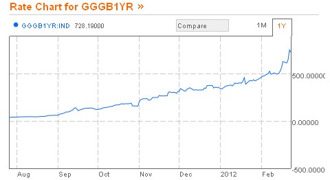 Los inversores no creen en el rescate. La rentabilidad de la deuda pública de Grecia a un año supera los 700 puntos básicos, nuevo récord. Ésta no ha dejado de subir tras el acuerdo de rescate, lo cual evidencia la certeza del mercado acerca de una posible quiebra de Grecia y su consiguiente salida del euro.