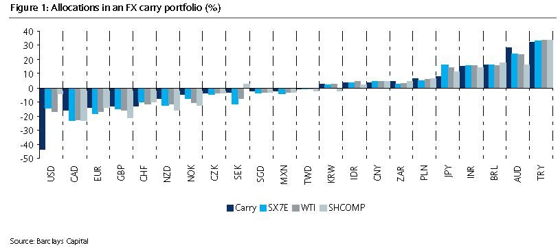 Para ello, los expertos de Barclays Capital apuestan por entrar largos en lira turca y dólar australiano frente al euro, libra esterlina y dólar canadiense. La denominada "naive carry strategy" habla también de estar largos en TRY y AUD con pequeñas posiciones en el real brasileño y el rupee indio. "La principal moneda de cambio en este caso es el dólar americano", concluyen los expertos.