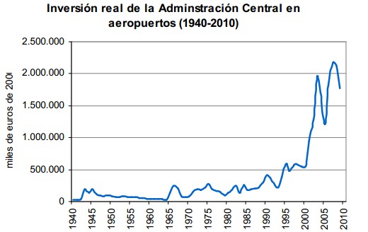 Este auge constructor con capital público sólo es comparable al del periodo comprendido entre 1965 y 1968, cuando el Gobierno franquista levantó nueve aeropuertos. La liberalización del mercado de transporte aéreo ha impulsado un cambio en el comportamiento de los gestores, incrementando la creación de nuevas rutas y aeropuertos. En España, detrás de esta presunta liberalización, hay una ingente cantidad de ayudas públicas tanto a compañías privadas, para que operen en rutas poco maduras, como a la construcción de nuevas instalaciones.
