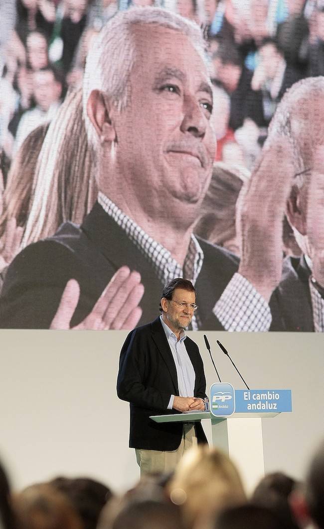 En el segundo día de campaña electoral en Andalucía, el presidente volvió a volcarse con Javier Arenas. Ambos acudieron a Almería, una tierra especialmente azotada por el desempleo, que se eleva más allá del 30%. Ante más de cuatro mil militantes y simpatizantes, que abarrotaban el auditorio, Rajoy proclamó: "No son tiempos fáciles, pero de esta vamos a salir. Nos va a costar, pero vamos a salir".