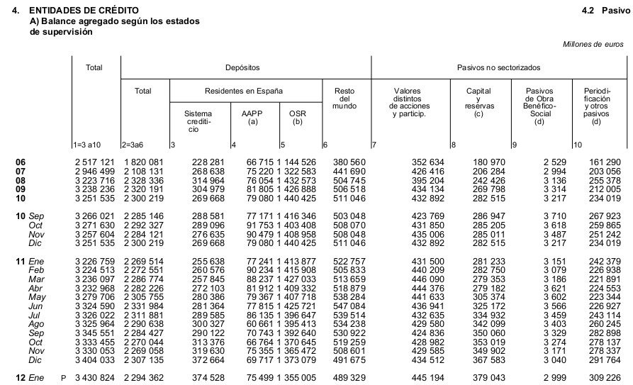 A ello se suma, por otro lado, el descenso de depósitos que se viene registrando en los últimos meses. Así, según el Banco de España, el volumen de depósitos del sector privado (familias y empresas) cayó un 4,6% interanual en 2011, mientras que el crédito concedido a la economía productiva se situó en 1,783 billones de euros el pasado diciembre, un 3,3% menos que un año antes.