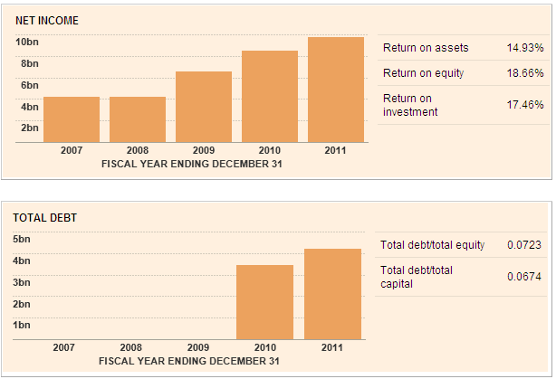 Y como no puedo y, realmente, estoy hablando del corto y medio plazo, pues no lo hago. Evidentemente, sí podría mirar el balance para, al menos, saber si estoy comprando algo excesivamente caro o a punto de quebrar. Pero, aparte de que es importante saber si una compañía puede estar a punto de quebrar, un balance poco tiene que decir sobre lo que hará una acción a dos años vista. De todas maneras, no parece que haya nada que justifique que estás comprando basura si compras Google, al revés, se trata de una compañía casi sin deuda y con beneficios crecientes: