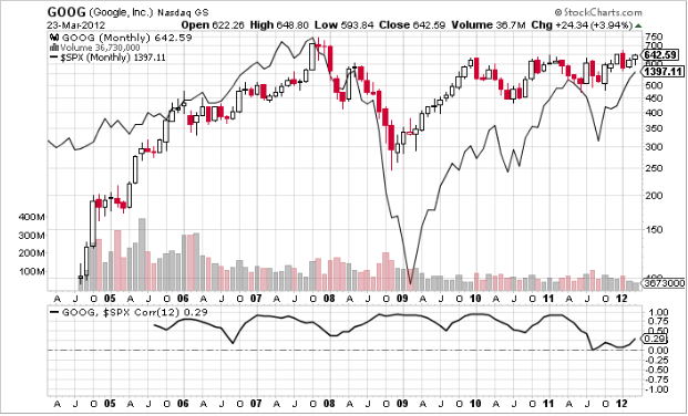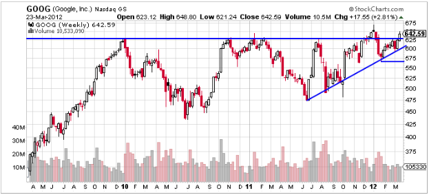 Creo que Google puede estar a punto de romper una resistencia de varios años. No voy a entrar a valorar la compañía desde un punto de vista fundamental porque para hacer una valoración seria no valdría con estudiar solo un balance al que todo el mundo puede acceder. Tendría que tener muchísimos recursos -con los que no cuento- para estudiar los clientes, los proveedores, los desarrolladores, chequear si son ciertos los números que dicen, entrevistarme con los directores y empleados... Es decir, un largo etcétera que realmente no tendría fin en un gigante como Google.