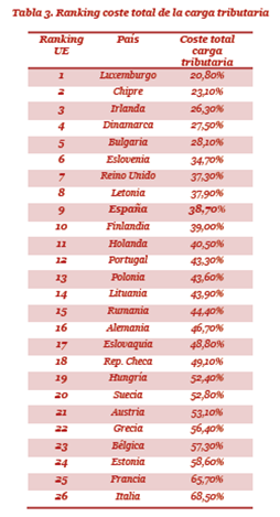 Por tanto, España se sitúa por encima de la media de tipos impositivos europeos, teniendo mucho margen para que se bajen y ninguno para que se suban.