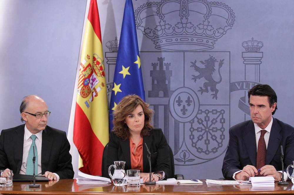 Mientras, Sáenz Santamaría se ayudó de Montoro y José Manuel Soria, ministro de Industria, para poner negro sobre blanco en relación a las cuentas y la nueva realidad energética, pero también para hacer mucha pedagogía y hacer política en estado puro. La vicepresidenta habló clarísimo sobre a lo que se está enfrentado el Gobierno y, por ende, todos los españoles: "España tiene palabra y va a cumplir", aseguró.
