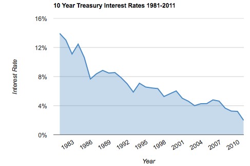 Los bonos del índice estudiado se han revalorizado en EEUU una media del 28% sólo en 2011, quedando muy por detrás los rendimientos del Standard & Poor’s 500 con un pírrico 2,1% en comparación. Coincidiendo con el desplome de la bolsa y de las expectativas, se ha experimentado una burbuja del mercado de bonos, en especial, desde 2009 y, en particular, en este último año 2011. Los últimos 30 años son un caso de libro de desinflación de precios e intereses, contexto muy favorable a la renta fija, como se acaba de explicar. La subida en los precios de los bonos ha sido, por extensión, muy significativa.