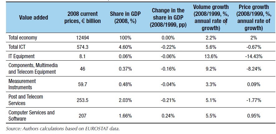 Además, este sector es uno de los pocos en el que los precios están bajando. Precisamente porque es una parte de la economía muy competitiva y en continua mejora, cada año, los costes caen (o suben las prestaciones por el mismo precio). De esta manera, igual que un ordenador personal cuesta ahora menos que hace 15 años (en términos reales y en muchos casos también en valores absolutos), las empresas pequeñas y medianas pueden disponer de servicios que antes eran exclusivos de las grandes firmas.