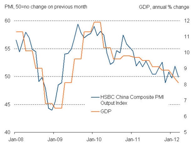 El Gobierno de China espera una ralentización de la economía nacional, que creció un 9,2% en 2011, hasta el 7,5% a finales de 2012, aunque organismos como el Banco Mundial (BM) o el Banco Asiático de Desarrollo (BAD) esperan que el aumento sea algo mayor (entre el 8,2 y el 8,5%).