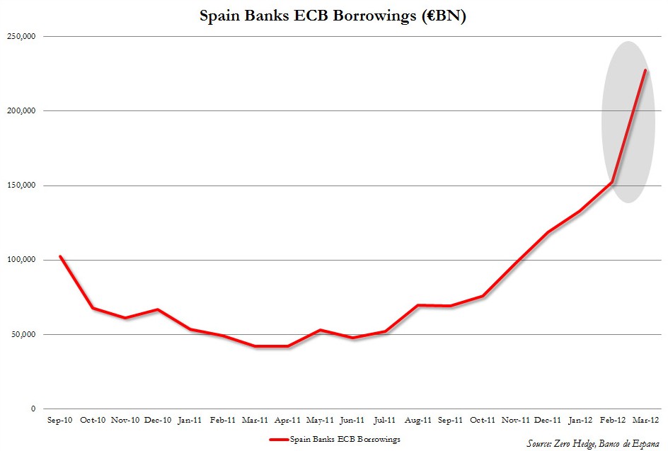 Este recrudecimiento de la tensión surge después de conocerse las peticiones de financiación al Banco Central Europeo (BCE) por parte de las entidades españolas, que sumaron 316.343 millones de euros el pasado marzo, un nuevo récord histórico, duplicando casi los 169.802 millones de febrero.