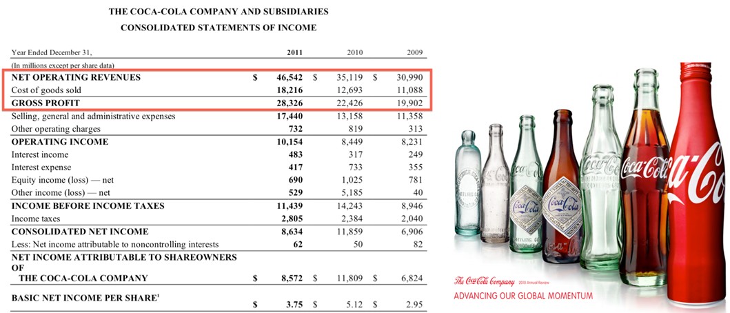 Un ejemplo a modo de ilustración. Vean la Cuenta de Resultados de Coca-Cola para los últimos tres años:
