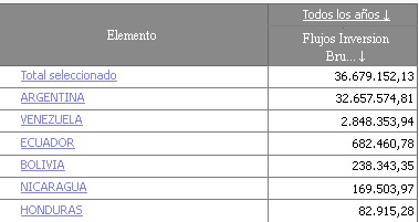 El principal destino de las inversiones españolas es Argentina, con un volumen acumulado (en términos brutos) superior a los 32.000 millones de euros durante las últimas dos décadas; el flujo de inversión directa en Venezuela se sitúa en casi 2.900 millones; en Ecuador alcanza los 682; en Bolivia asciende a 239; en Nicaragua a 169; y en Honduras apenas supone 83 millones de euros.