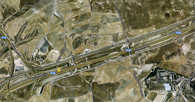 Los terrenos en Valdecarros vienen barajándose desde las fases iniciales del proyecto, al menos desde que este saltase a las páginas de los periódicos al final del pasado año. En principio, parecen idóneos para Eurovegas con una salvedad: la situación de la Incineradora Valdemingómez, ubicada a poco más de medio kilómetro de los límites del terreno propuesto, como se puede ver en esta imagen cortesía de Google Maps (la incineradora es el gran complejo abajo a la derecha):