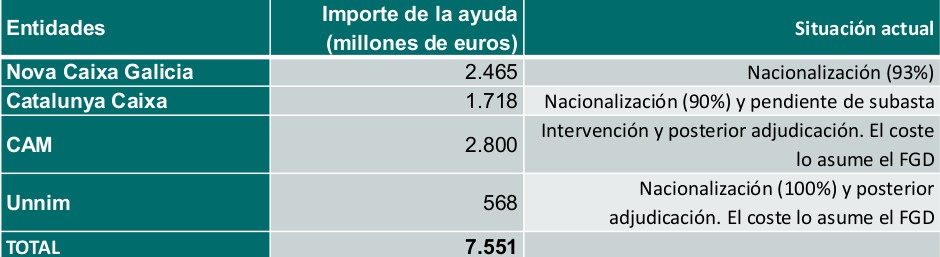 3) Caen Novacaixaglicia, Catalunya Caixa y Unnim: el Estado entra en el capital de estas tres entidades por un importe total de 4.751 millones (FROB 2).