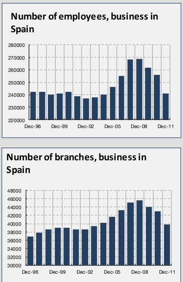 Las 45 cajas iniciales se han reducido a 11 -aún en proceso de reestructuración-; el conjunto del sector bancario ha cerrado unas 4.000 oficinas (20%) y ha aplicado una reducción de plantilla de 25.000 empleados (el 15% del total).