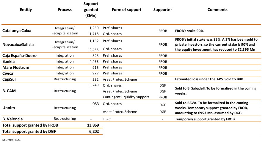 - FROB: unos 15.000 millones de euros ya aportados y la previsión de inyectar otros 15.000 millones en los próximos meses.