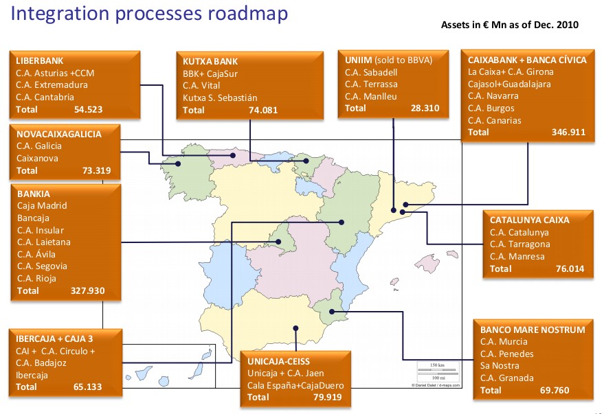Mapa de fusiones de cajas de ahorros
