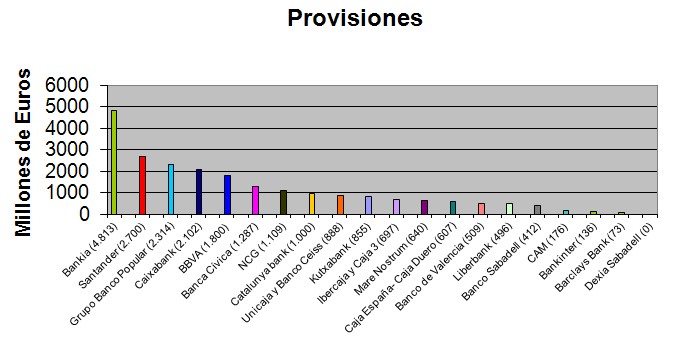 El reparto de provisiones adicionales entre las principales entidades se resume en el siguiente gráfico:
