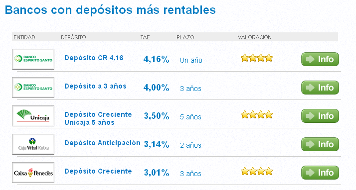Pinche en la tabla para acceder a variedad de productos de ahorro