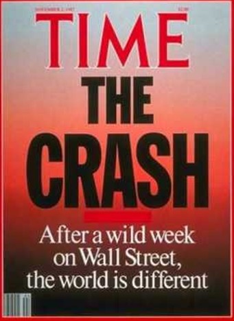 Lo que me parece más interesante no es eso sino lo que ocurrió posteriormente. Después del crash, el mercado continuaría descendiendo a menor ritmo durante muy pocas semanas y desde el momento del crash y mientras el mercado "encontraba" suelo, el pánico se desató. Famosa es la portada de 1987 que ejemplifica el sentimiento de aquéllos dias: