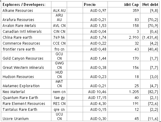 Adjunto unas cuantas de estas empresas cotizadas (a título informativo, sin que suponga una recomendación de compra o de venta), aunque la mayoría no está produciendo aún.