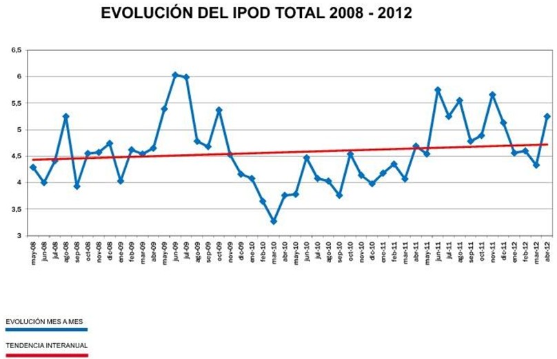Una explicación sencilla podría ser que los gastos de intermediación han subido, pero si acudimos a los informes de COAG nos damos cuenta de que sí que existe una pequeña tendencia positiva pero muy leve (ver gráfico), al menos desde que comienzan los datos (2008). Los precios se multiplicaban en 2008 por 4,5 entre origen y destino y ahora lo hacen 4,7 veces.