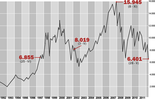Por último, la Bolsa española ha registrado un retroceso del 2,17%, hasta rozar los 6.400 puntos, nuevo mínimo anual y un nivel desconocido desde hace nueve años. Las pérdidas acumuladas este año se elevan al 25,27%. La bajada del Ibex ha superado al resto de plazas europeas: Milán perdió un 0,74%; el índice Euro Stoxx 50 un 0,65%; y París un 0,16%. Por el contrario, subieron Fráncfort (0,84%) y Londres (0,09%).