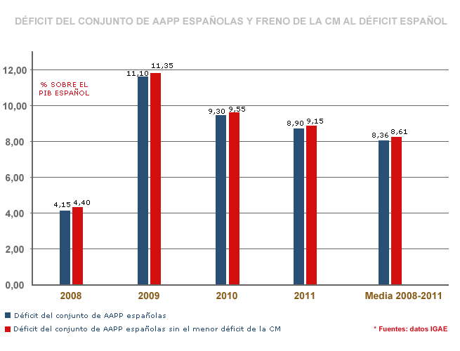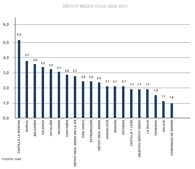Por si fuera poco, la Comunidad de Madrid registró el menor déficit de todas las CCAA en el período 2008-2011, con una media del 1% frente al 2,4% del resto de regiones.