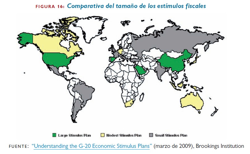 Entre 2008 y 2009, la mayor parte de los gobiernos de los países desarrollados, con EEUU y España a la cabeza, implementaron significativos planes de estímulo fiscal, aumentando el gasto público con el fin de impulsar el crecimiento económico.