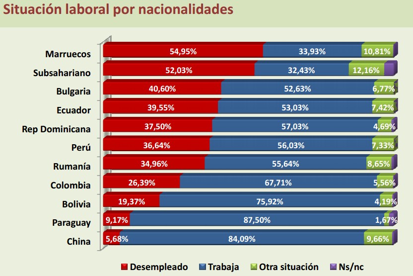 Lo que ocurre en Madrid se puede extrapolar a lo que sucede en el resto de España. Y es que los ciudadanos procedentes de Marruecos sufren un paro de más de 148.000 personas, lo que contrasta con los 2.600 chinos desempleados.