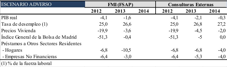El peor de los escenarios contempla los siguientes supuestos: una caída del PIB del 6,5% hasta 2014; una tasa de paro del 27% en 2014; un desplome en los precios de la vivienda respecto a los de 2007 del 55-60% y una caída del suelo de hasta el 90%.