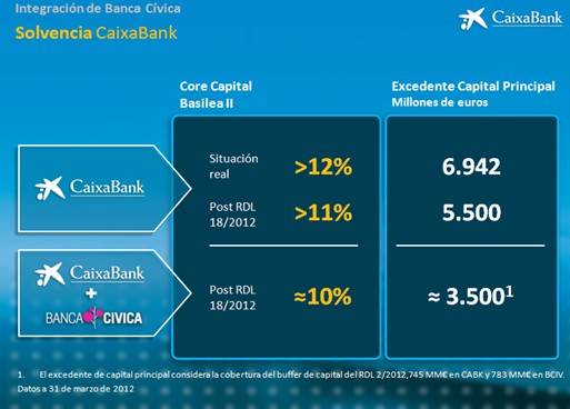 En cualquier caso, el impacto de la integración es asumible debido a la buena posición de capital de CaixaBank, ya que se mantendrán los ratios por encima del capital exigido por Basilea II y III y por la Autoridad Bancaria Europea.