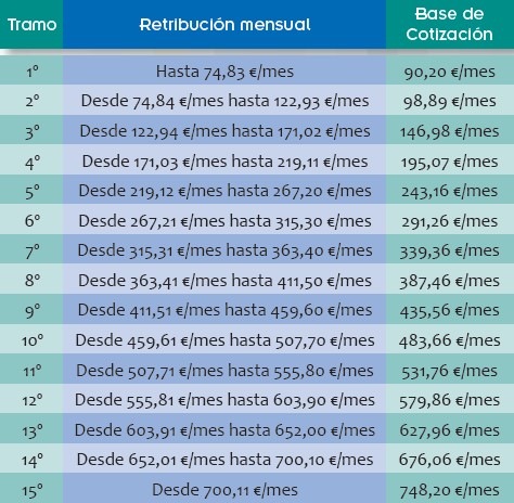 Hasta ahora había una cuota única de 157 euros al mes, independientemente de la jornada laboral que tuviera la empleada. Desde este momento, existe un cuadro de bases de cotización, en función del sueldo que cobre. Luego, cada empleador pagará el 18,3% de esta base y el empleado el 3,7% para un total del 22%. Eso sí, desde 2013 a 2018 el tipo de cotización subirá a un ritmo del 0,9% anual.