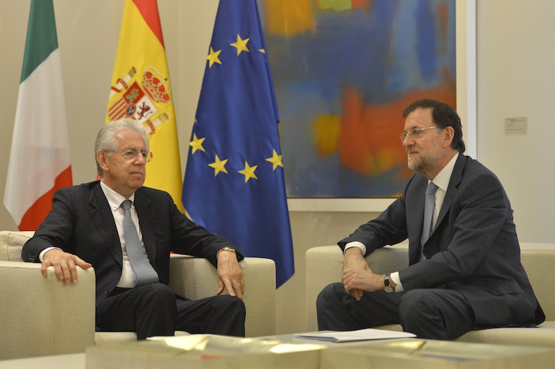 Tanto Monti como Rajoy, obviando las grandes caídas que se han producido en ambas bolsas europeas y a la tensión agravada en el mercado de deuda tras las declaraciones de Draghi, se han mostrado conformes con las palabras del presidente del BCE.