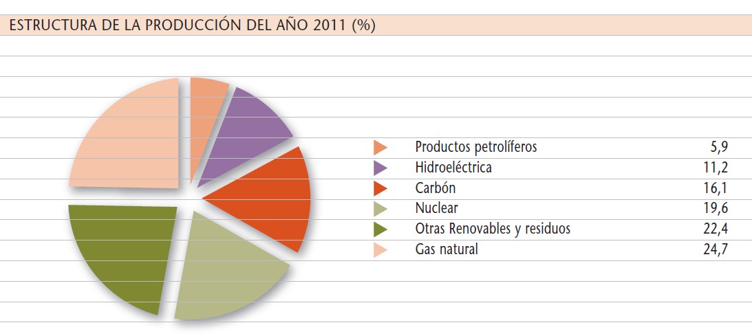 Por su parte, la producción descendió un 2,8% y se situó en 293.737 millones de kWh, debido al descenso en el consumo interno y del 27% en el saldo exportador. Según los datos de Unesa, el gas natural se llevó el primer puesto, con un 24,7% de la producción, seguido de las renovables con un 22,4%, la nuclear con un 19,6%, el carbón con un 16,1% y la hidroeléctrica con un 11,2%.