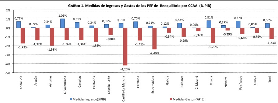 Tras unos presupuestos presentados a principios de año poco creíbles, el Consejo de Política Fiscal y Financiera (CPFF) publicó el 17 de mayo de 2012, los PEF elaborados por las CCAA. Como resultado, el CPFF consideró que todas las autonomías excepto Asturias, que tuvo que elaborar un segundo PEF que fue aprobado por el CPFF el 12 de julio, habían introducido medidas idóneas para cumplir con el OEP del -1,5% PIB en 2012.