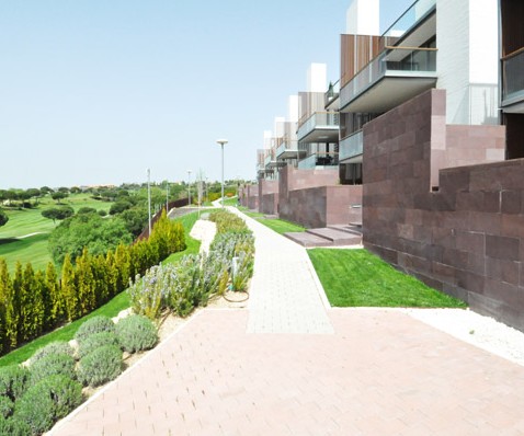La urbanización dispone de áreas comunes compuestas de un conjunto de zonas verdes y arbolado por las que el ministro podrá pasear junto a su mujer, María Belén Liras.