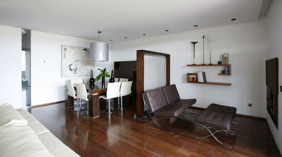 Los suelos de el hall, pasillo y salón son de tarima flotante y además los techos llevan una fosa perimetral dejando un cortinero en la zona de ventanas de salón y dormitorios.