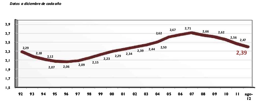 Sin embargo, la cifra aún es más preocupante si tan sólo se contabiliza el número de ocupados registrados en el último día de agosto: 16.682.422 de cotizantes -la cifra más baja desde finales de 2003- para mantener a 8,2 millones de pensionistas; es decir, apenas dos trabajadores para pagar una pensión, el menor nivel que se registra desde finales de los años 90.
