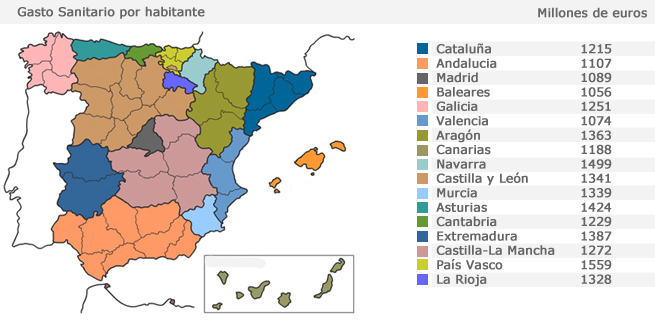 - La disparidad presupuestaria y de financiación hace que la inversión en Sanidad y Educación presente llamativas diferencias entre unas comunidades y otras. El estado autonómico, en su forma presente, se ha convertido en una fuente de desigualdad entre los españoles, que reciben servicios que están más o menos dotados presupuestariamente según la región en la que vivan.