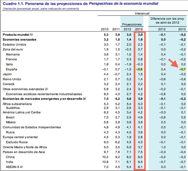 - Los únicos dos países de la tabla que sufrirán una contracción de su Producto Nacional en 2013 son España e Italia.