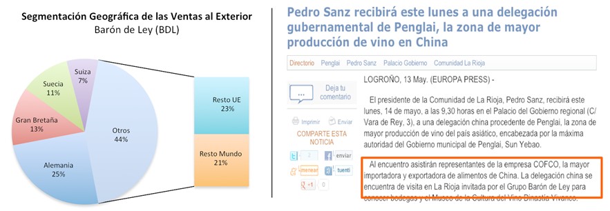 En la parte derecha destaco una noticia de mayo de este año: Barón de Ley invitaba a una delegación china -en la que figuraba COFCO, la mayor importadora y exportadora de alimentos de China- a visitar La Rioja. Buen anfitrión... ¡y buen invitado!