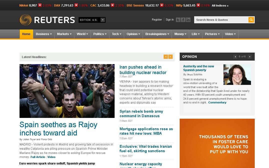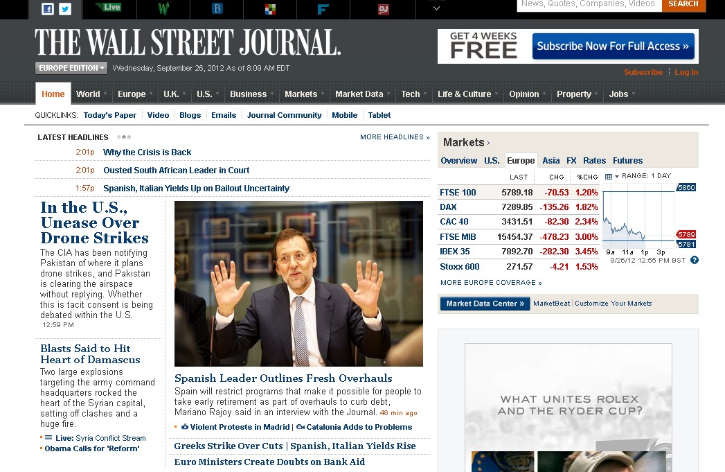 La edición europea de The Wall Street Journal ha tenido una foto de Mariano Rajoy en Nueva York abriendo su web durante buena parte de la jornada.
