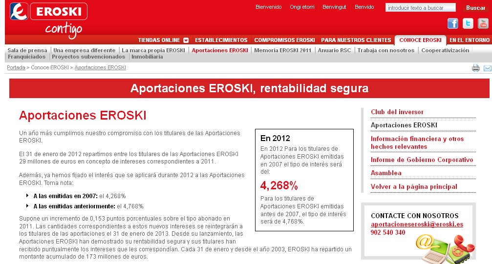 De hecho, Eroski ha lanzado una nueva emisión de aportaciones este año. La empresa especifica en su web que se trata de "un producto que se emite a perpetuidad, es decir, no tiene fecha de vencimiento determinado. Sin embargo, EROSKI podría amortizar anticipadamente, de forma total o parcial, la emisión después del quinto año de la fecha de desembolso".