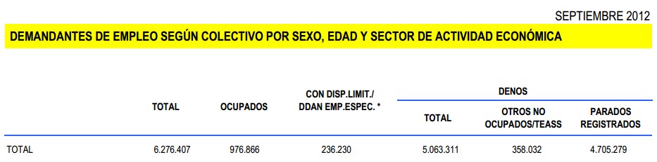 Estos colectivos representan un total de 594.262 parados. Éstos, unidos a los 4,7 parados oficiales, tenemos que el paro total en España alcanza los 5.299.541 desempleados. Esto supone 66.320 parados más de los que se registraron en agosto también sin el efecto del maquillaje.