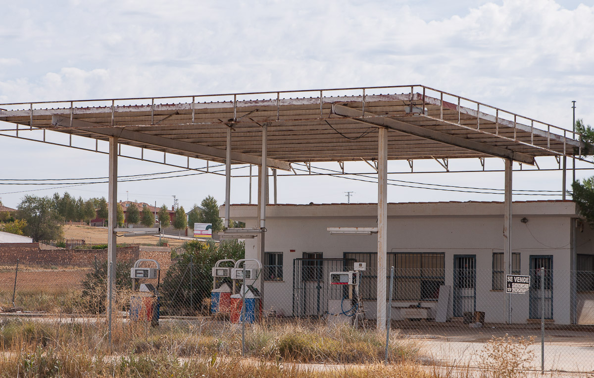 La vieja gasolinera de Villar de Cañas está cerrada y la nueva carretera, que rodeará el pueblo, hace que su futuro no sea muy optimista