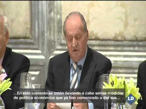 Rey Juan Carlos I: "España, como otros países europeos y del resto de mundo, atraviesa en la actualidad una compleja crisis económica. En este contexto se están llevando a cabo serias medidas de política económica que ya han comenzado a dar sus frutos mejorando la productividad y la competitividad así como la tendencia de nuestras exportaciones de bienes y servicios".